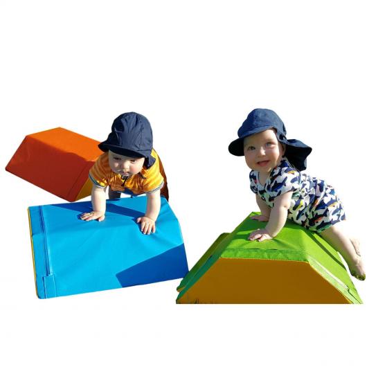Durch die weiche Beschaffenheit der Softbausteine, sowie dem hautfreundlichen Planenstoff der Motorik-Bausteine von Bänfer wird freies und kreatives Verhalten der Kinder von Beginn an gefördert.
