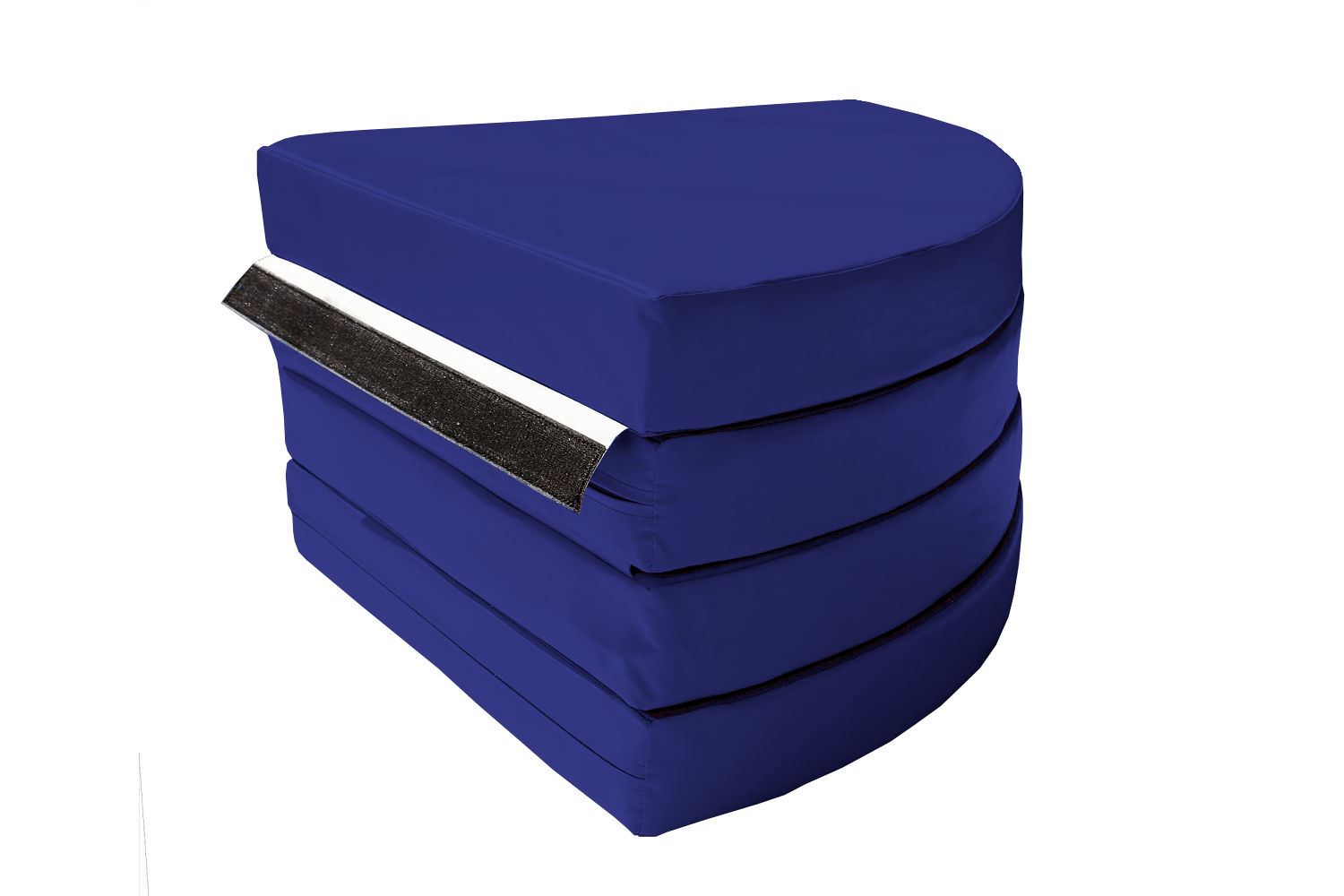 Zusammengelegt zu einem Viertelkreis können unsere Poledance-Matten platzsparend aufbewahrt werden .