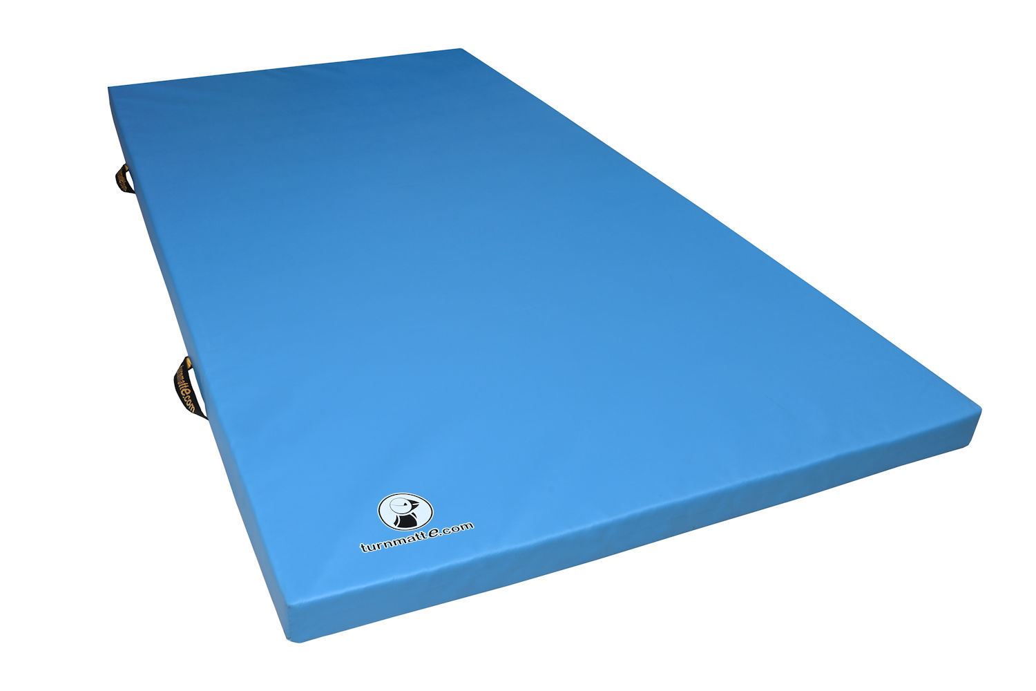 Diese Leichtturnmatte aus einem Rückläufer in hellblau hat vier Griffe und ermöglicht so einen bequemen Transport. Ihr 6 cm starker Kern aus VB 80 hat hervorragende Dämpfungseigenschaften und ist für den alltäglichen Einsatz bestens geeignet. Diese Turnmatte in den Maßen 100 x 200 cm überzeugt durch ihre optimale Dämpfung, einen angenehmen Bezug und den speziellen Antirutschboden. Wahlweise ist diese Leichtturnmatte mit oder ohne Lederecken und in elf verschiedenen Farben verfügbar. Leichtturnmatten sind die meistverkauften Sportmatten überhaupt.