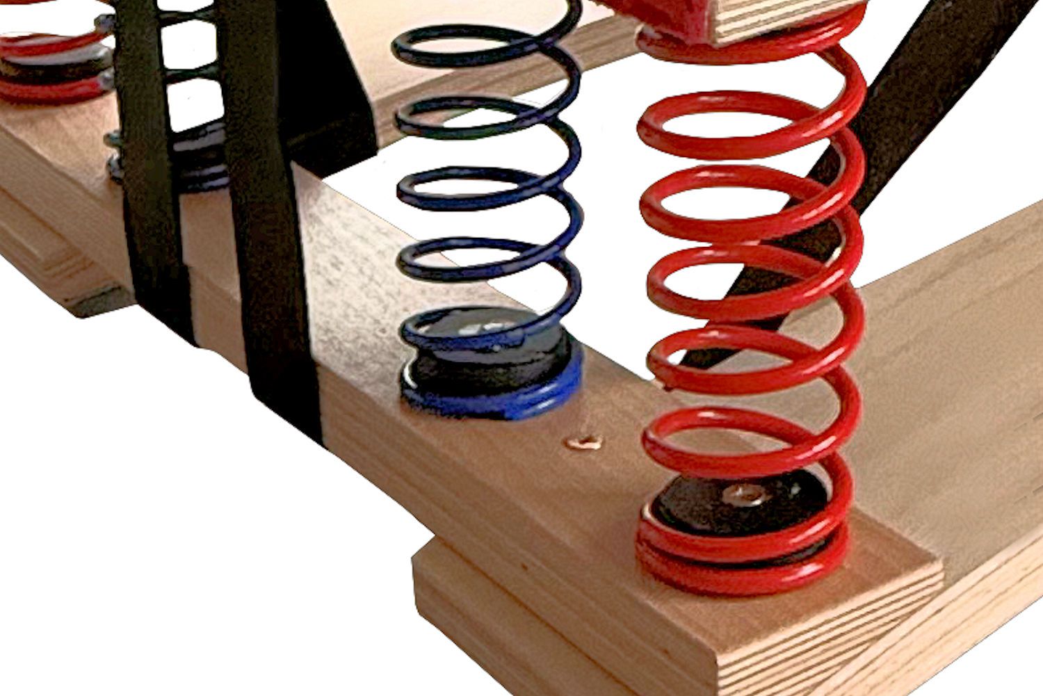 Das Sprungbrett ist für ein Körpergewicht von 40 bis 60 kg ausgelegt. Bei einem Gewicht von 40 bis ca. 45 kg werden ausschließlich die roten Federn verwendet, um eine weichere Federung zu gewährleisten. Bei einem Gewicht von ca. 45 bis 60 kg kommen alle vier Federn (rote und blaue) zum Einsatz, wodurch eine höhere Stabilität und ein stärkerer Rückstoß erreicht wird.